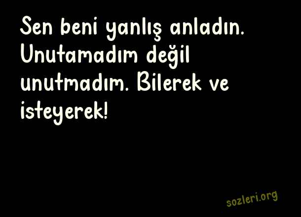 Sen beni yanlış anladın. Unutamadım değil unutmadım. Bilerek ve isteyerek! ( Güzel Sözler Sayfası )