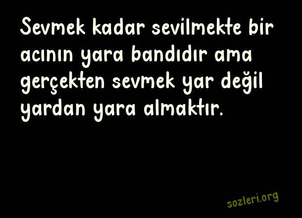 Sevmek kadar sevilmekte bir acının yara bandıdır ama gerçekten sevmek yar değil yardan yara almaktır. ( Güzel Sözler Sayfası )