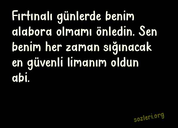 Fırtınalı günlerde benim alabora olmamı önledin. Sen benim her zaman sığınacak en güvenli limanım oldun abi. ( Kardeşten Abiye Güzel Sözler )