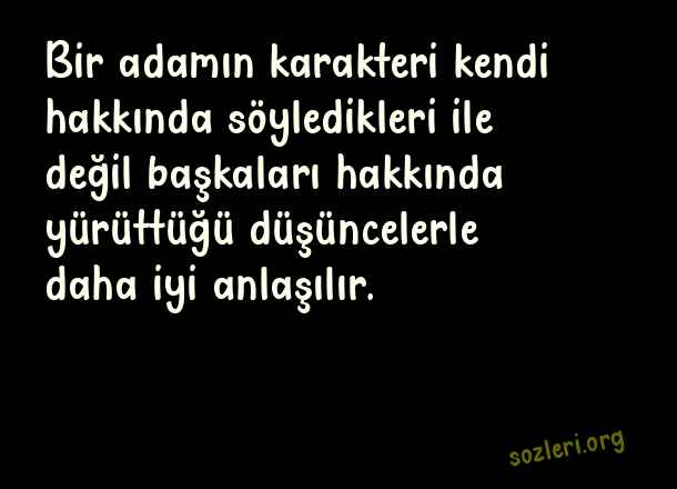 Bir adamın karakteri kendi hakkında söyledikleri ile değil başkaları hakkında yürüttüğü düşüncelerle daha iyi anlaşılır. ( Kişilik )