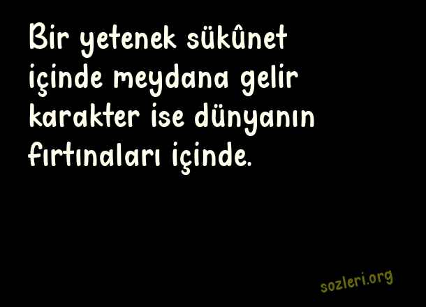 Bir yetenek sükûnet - Kişilik İle İlgili Sözler .. Bir yetenek sükûnet içinde meydana gelir karakter ise dünyanın fırtınaları içinde. ( Kişilik )