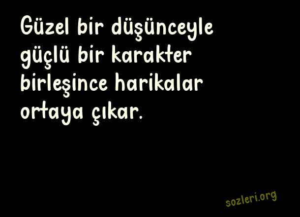 Güzel bir düşünceyle güçlü bir karakter birleşince harikalar ortaya çıkar. ( Kişilik )