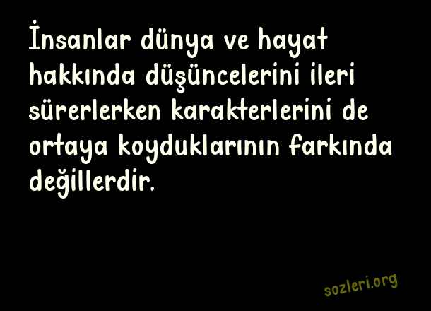 İnsanlar dünya ve hayat hakkında düşüncelerini ileri sürerlerken karakterlerini de ortaya koyduklarının farkında değillerdir. ( Kişilik )