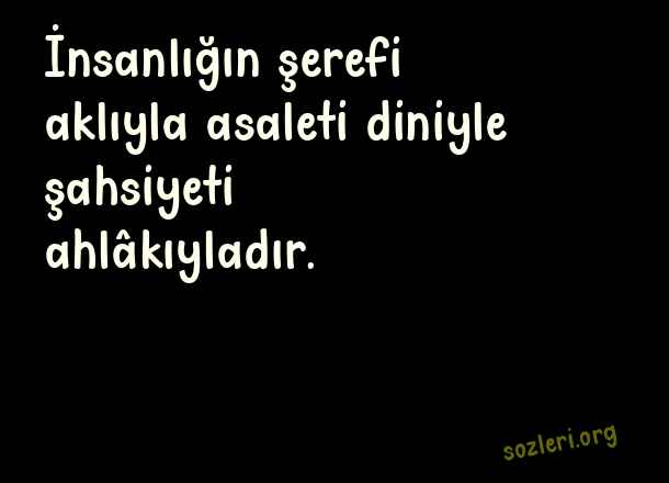 İnsanlığın şerefi aklıyla asaleti diniyle şahsiyeti ahlâkıyladır. ( Kişilik )