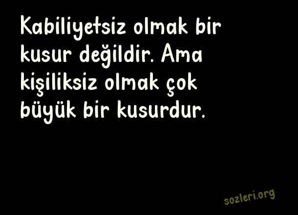 Kabiliyetsiz olmak bir kusur değildir. Ama kişiliksiz olmak çok büyük bir kusurdur. ( Kişiliksiz İnsanlar )