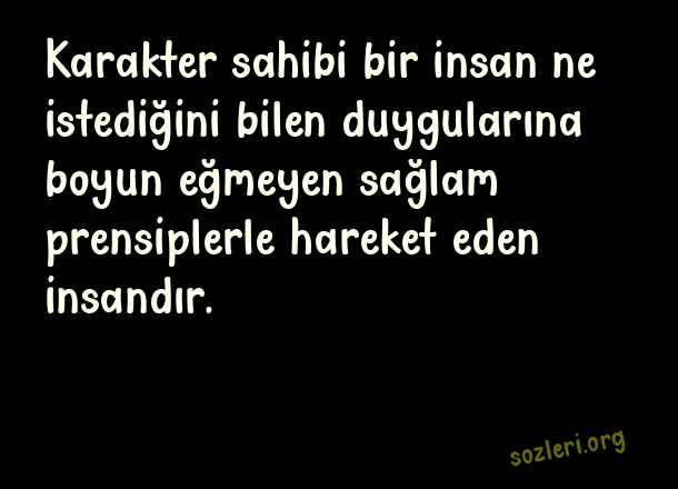 Karakter sahibi bir insan ne istediğini bilen duygularına boyun eğmeyen sağlam prensiplerle hareket eden insandır. ( Kişilik )