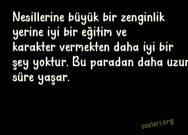 Nesillerine büyük bir zenginlik yerine iyi bir eğitim ve karakter vermekten daha iyi bir şey yoktur. Bu paradan daha uzun süre yaşar. ( Kişilik )