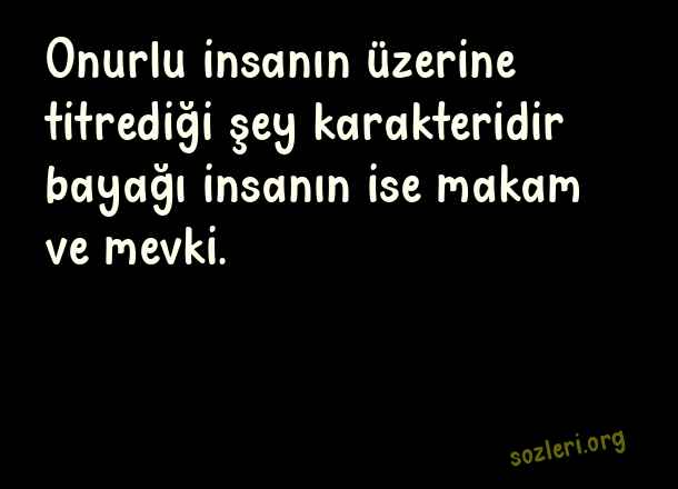 Onurlu insanın üzerine titrediği şey karakteridir bayağı insanın ise makam ve mevki. ( Kişilik )