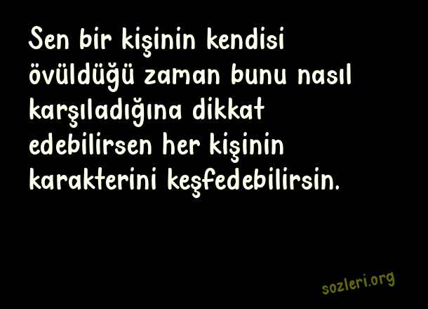 Sen bir kişinin kendisi övüldüğü zaman bunu nasıl karşıladığına dikkat edebilirsen her kişinin karakterini keşfedebilirsin. ( Kişilik )