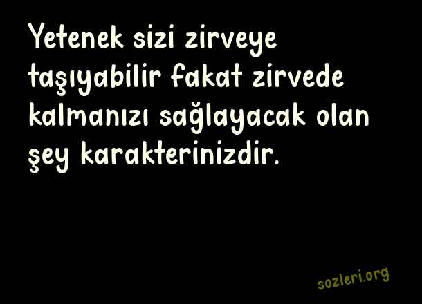 Yetenek sizi zirveye taşıyabilir fakat zirvede kalmanızı sağlayacak olan şey karakterinizdir. ( Kişilik )