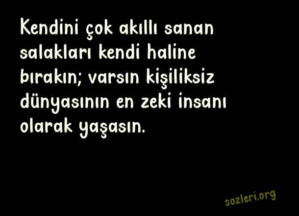 Kendini çok akıllı sanan salakları kendi haline bırakın; varsın kişiliksiz dünyasının en zeki insanı olarak yaşasın. ( Kişiliksiz İnsanlar )