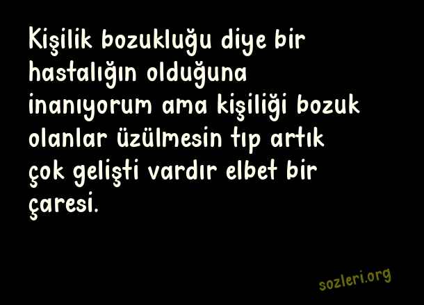 Kişilik bozukluğu diye bir hastalığın olduğuna inanıyorum ama kişiliği bozuk olanlar üzülmesin tıp artık çok gelişti vardır elbet bir çaresi. ( Kişiliksiz İnsanlar )