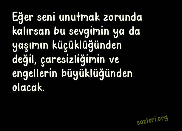 Eğer seni unutmak zorunda kalırsan bu sevgimin ya da yaşımın küçüklüğünden değil, çaresizliğimin ve engellerin büyüklüğünden olacak. ( Saf Sözler )