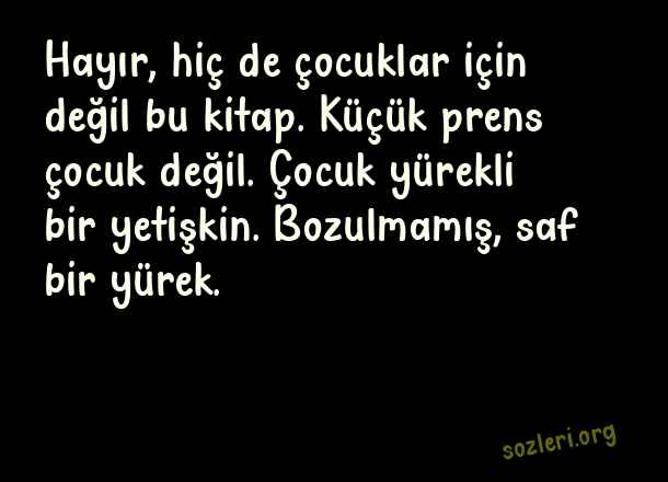 Hayır, hiç de çocuklar için değil bu kitap. Küçük prens çocuk değil. Çocuk yürekli bir yetişkin. Bozulmamış, saf bir yürek. ( Saf Sözler )