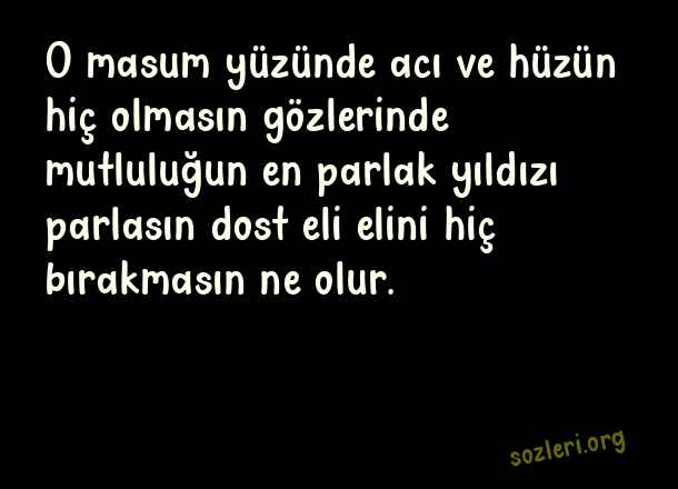 O masum yüzünde acı ve hüzün hiç olmasın gözlerinde mutluluğun en parlak yıldızı parlasın dost eli elini hiç bırakmasın ne olur. ( Saf Sözler )