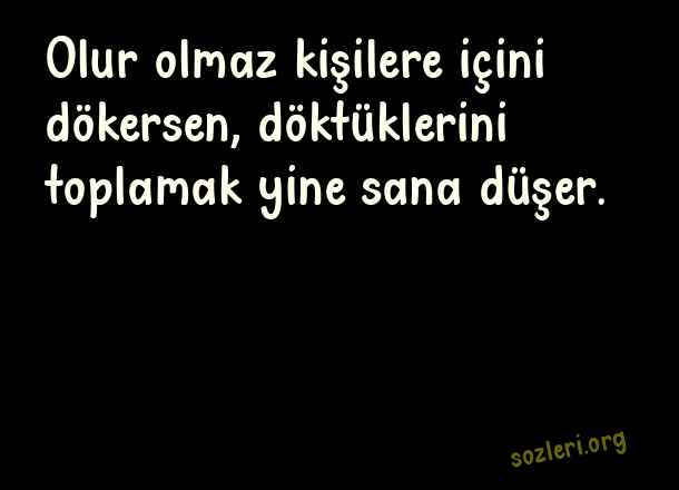 Olur olmaz kişilere içini dökersen, döktüklerini toplamak yine sana düşer. ( Saf Sözler )