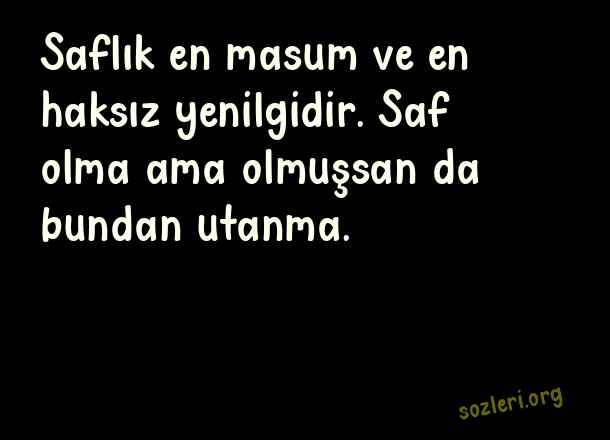 Saflık en masum ve en haksız yenilgidir. Saf olma ama olmuşsan da bundan utanma. ( Saf Sözler )