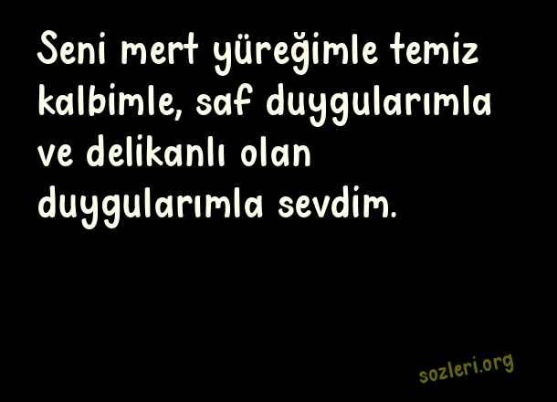 Seni mert yüreğimle temiz kalbimle, saf duygularımla ve delikanlı olan duygularımla sevdim. ( Saf Sözler )