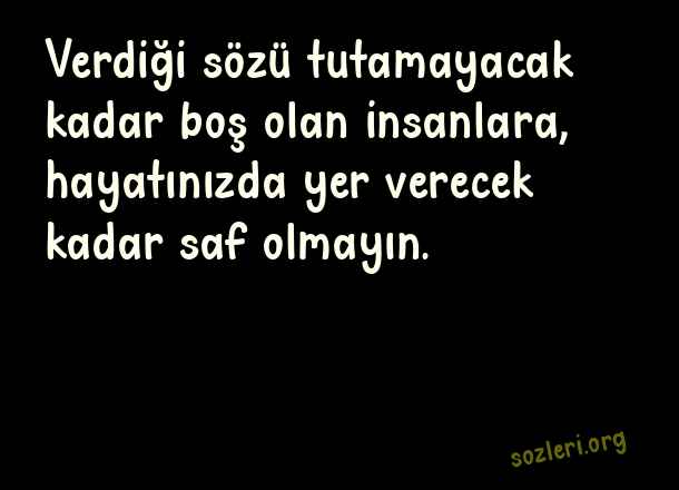 Verdiği sözü tutamayacak kadar boş olan insanlara, hayatınızda yer verecek kadar saf olmayın. ( Saf Sözler )