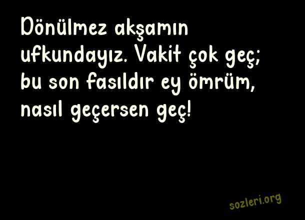 Dönülmez akşamın ufkundayım, vakit çok geç. Bu son fasıldır ey ömrüm, nasıl geçersen geç.