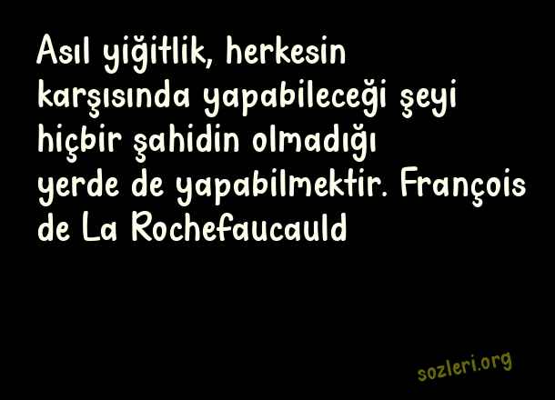 Asıl yiğitlik, herkesin karşısında yapabileceği şeyi hiçbir şahidin olmadığı yerde de yapabilmektir. François de La Rochefaucauld ( Yiğitlik )
