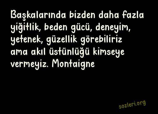 Başkalarında bizden daha fazla yiğitlik, beden gücü, deneyim, yetenek, güzellik görebiliriz ama akıl üstünlüğü kimseye vermeyiz. Montaigne ( Yiğitlik )