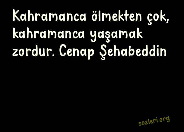 Kahramanca ölmekten çok, kahramanca yaşamak zordur. Cenap Şehabeddin ( Yiğitlik )