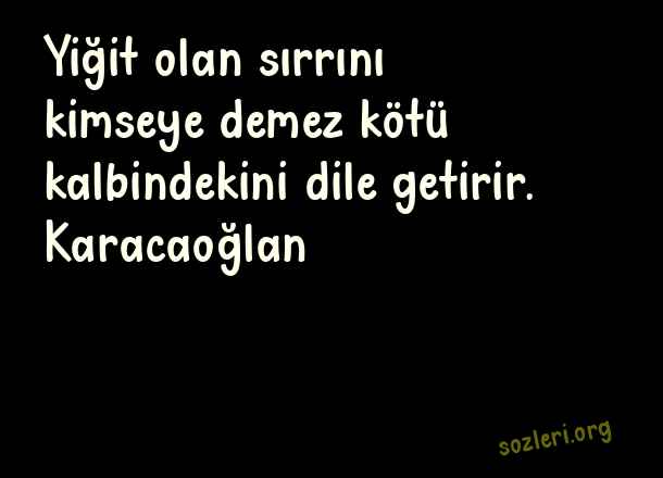 Yiğit olan sırrını kimseye demez kötü kalbindekini dile getirir. Karacaoğlan ( Yiğitlik )
