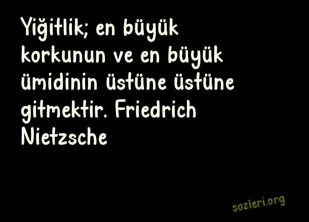 Yiğitlik; en büyük korkunun ve en büyük ümidinin üstüne üstüne gitmektir. Friedrich Nietzsche ( Yiğitlik )