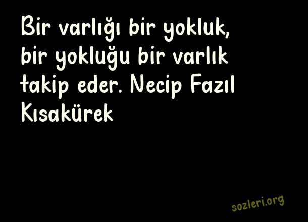 Bir varlığı bir - Yokluk İle İlgili Sözler .. Bir varlığı bir yokluk, bir yokluğu bir varlık takip eder. Necip Fazıl Kısakürek ( Yokluk )