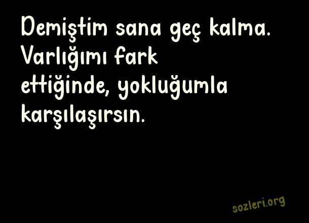 Demiştim sana geç kalma. Varlığımı fark ettiğinde, yokluğumla karşılaşırsın. ( Yokluk )