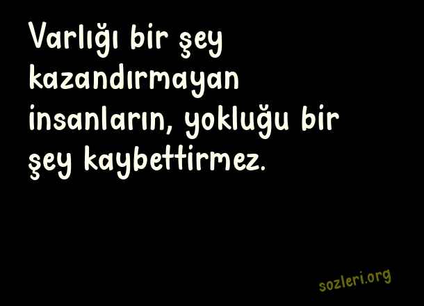 Varlığı bir şey kazandırmayan insanların, yokluğu bir şey kaybettirmez. ( Yokluk )