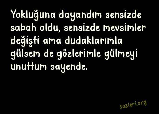 Yokluğuna dayandım sensizde sabah oldu, sensizde mevsimler değişti ama dudaklarımla gülsem de gözlerimle gülmeyi unuttum sayende. ( Yokluk )