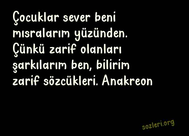 Çocuklar sever beni mısralarım yüzünden. Çünkü zarif olanları şarkılarım ben, bilirim zarif sözcükleri. Anakreon ( Zarafet )