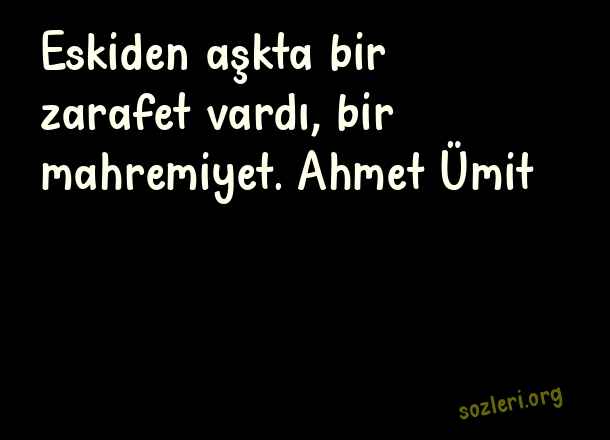 Eskiden aşkta bir zarafet vardı, bir mahremiyet. Ahmet Ümit ( Zarafet )