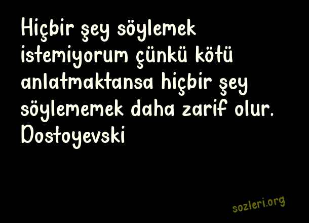 Hiçbir şey söylemek istemiyorum çünkü kötü anlatmaktansa hiçbir şey söylememek daha zarif olur. Dostoyevski ( Zarafet )