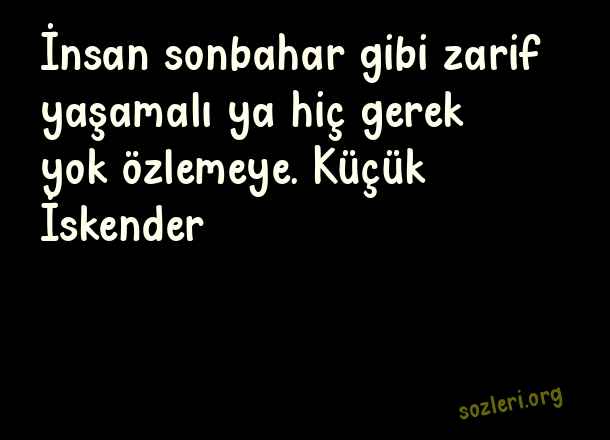 İnsan sonbahar gibi zarif yaşamalı ya hiç gerek yok özlemeye. Küçük İskender ( Zarafet )