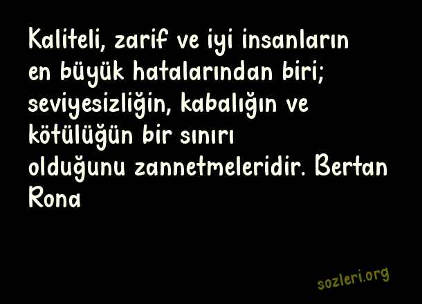 Kaliteli, zarif ve iyi insanların en büyük hatalarından biri; seviyesizliğin, kabalığın ve kötülüğün bir sınırı olduğunu zannetmeleridir. Bertan Rona ( Zarafet )