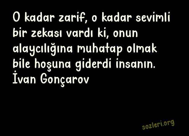 O kadar zarif, o kadar sevimli bir zekası vardı ki, onun alaycılığına muhatap olmak bile hoşuna giderdi insanın. İvan Gonçarov ( Zarafet )