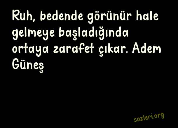 Ruh, bedende görünür - Zarafet İle İlgili Sözler .. Ruh, bedende görünür hale gelmeye başladığında ortaya zarafet çıkar. Adem Güneş ( Zarafet )