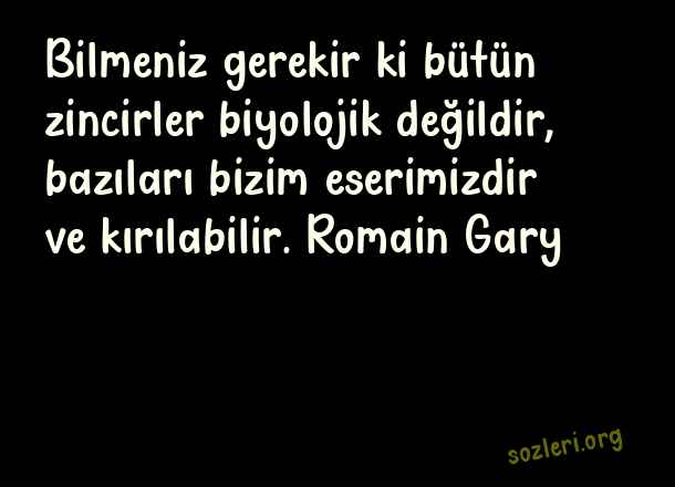 Bilmeniz gerekir ki bütün zincirler biyolojik değildir, bazıları bizim eserimizdir ve kırılabilir. Romain Gary ( Zincirleri Kırmak )