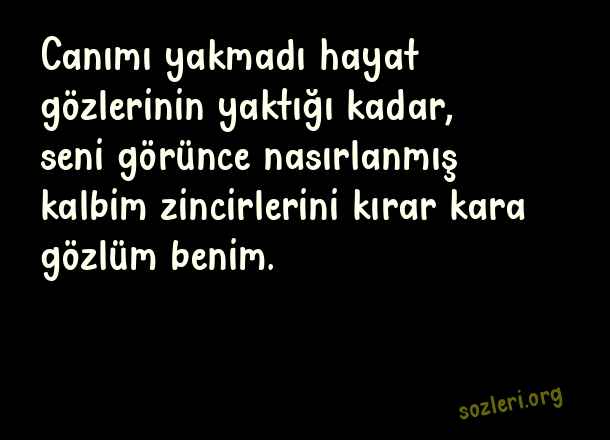 Canımı yakmadı hayat gözlerinin yaktığı kadar, seni görünce nasırlanmış kalbim zincirlerini kırar kara gözlüm benim. ( Zincirleri Kırmak )