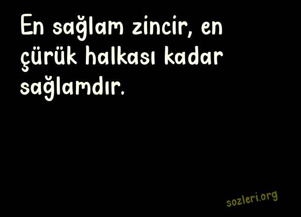 En sağlam zincir, - Zincirleri Kırmak İle İlgili Sözler .. En sağlam zincir, en çürük halkası kadar sağlamdır. ( Zincirleri Kırmak )