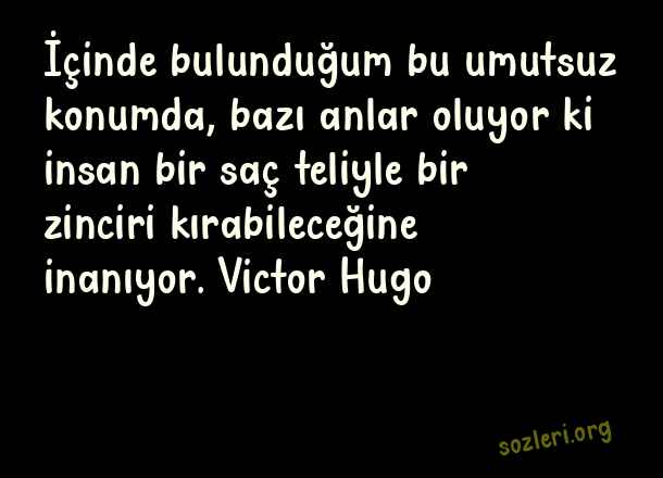 İçinde bulunduğum bu umutsuz konumda, bazı anlar oluyor ki insan bir saç teliyle bir zinciri kırabileceğine inanıyor. Victor Hugo ( Zincirleri Kırmak )