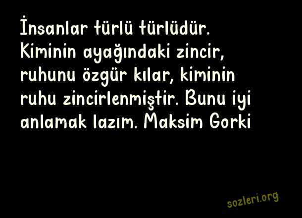 İnsanlar türlü türlüdür. Kiminin ayağındaki zincir, ruhunu özgür kılar, kiminin ruhu zincirlenmiştir. Bunu iyi anlamak lazım. Maksim Gorki ( Zincirleri Kırmak )