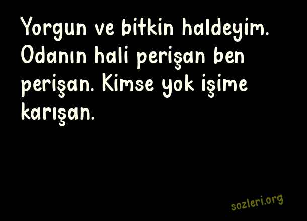 Yorgun ve bitkin haldeyim. Odanın hali perişan ben perişan. Kimse yok işime karışan. ( Güzel Sözler Sayfası )